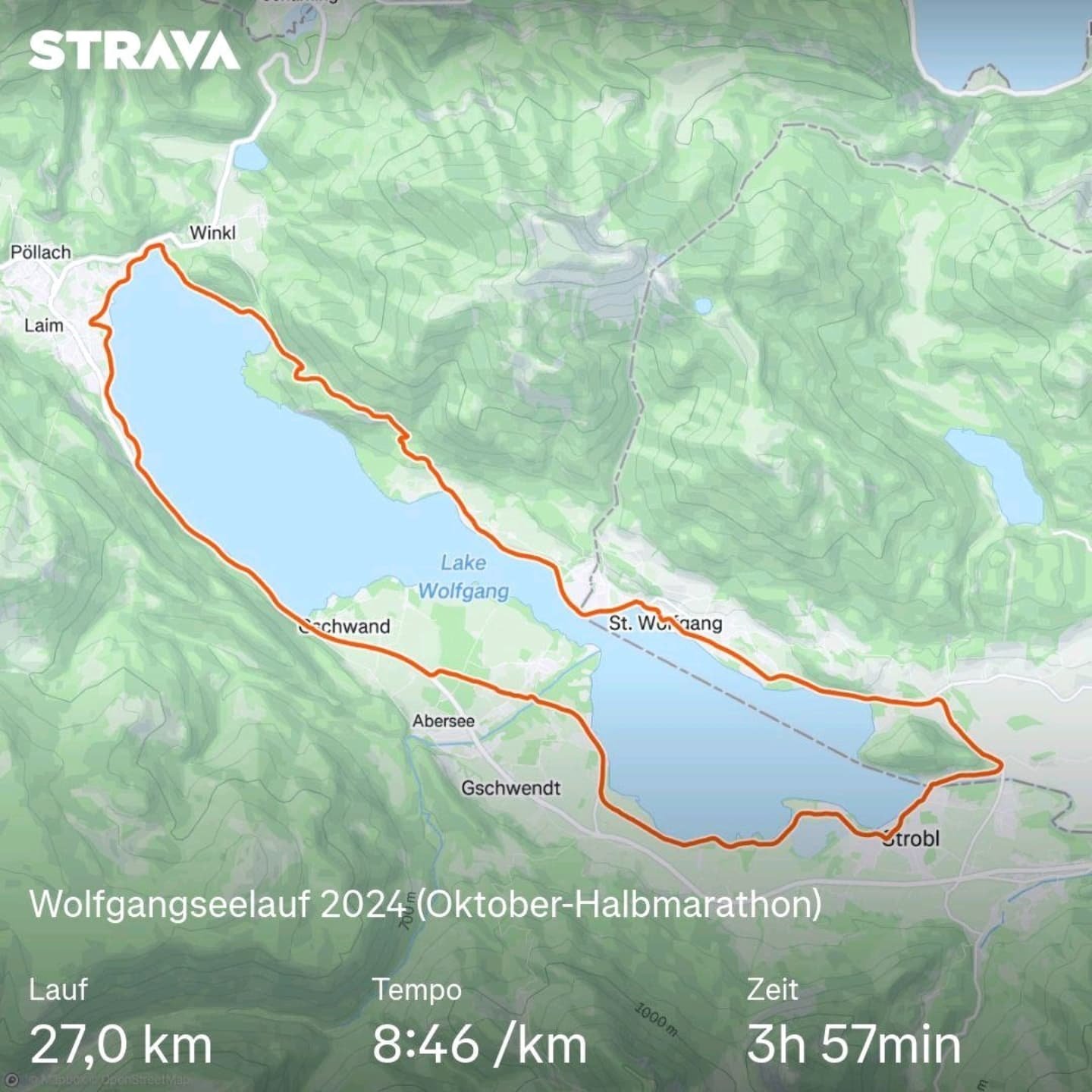 Nach ein paar Kilometern kommen brutale Höhenmeter 🏔️, bevor es nach dem Abstieg noch darum geht, einen Halbmarathon zu meistern. Bis Kilometer 19 ging es auch diesmal, dafür war ich aber auch viel kaputter am Ende. 🥵 Somit ist das Kapitel Wolfgangseelauf abgeschlossen. Zitat von mir: „Es gibt so viele schöne flache Halbmarathons, da muss ich mir echt nicht mehr den Wolfgangseelauf antun.“ 😂 Aber falls ihn jemand machen möchte: Er ist wirklich, wirklich schön.