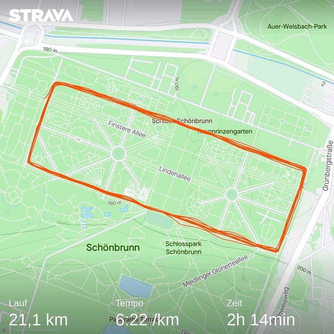 Zweites Mal in diesem Jahr habe ich die Halbmarathon-Distanz gelaufen. Und mein neuer persönlicher Rekord ist jetzt 2:14, 25 Minuten schneller als mein bisheriger Rekord. 😲 Das Wetter war großartig (und kalt). Obwohl ich vorher überhaupt keine Motivation finden konnte, fühlte ich mich während des Laufes großartig und danach. #laufend #sport #schönbrunn #schlosspark #8runden #achtrunden #palmenhaus #lauf #laufen #lauf #halbmarathon #viennacitymarathon #training #fitness #fit #schweinehund